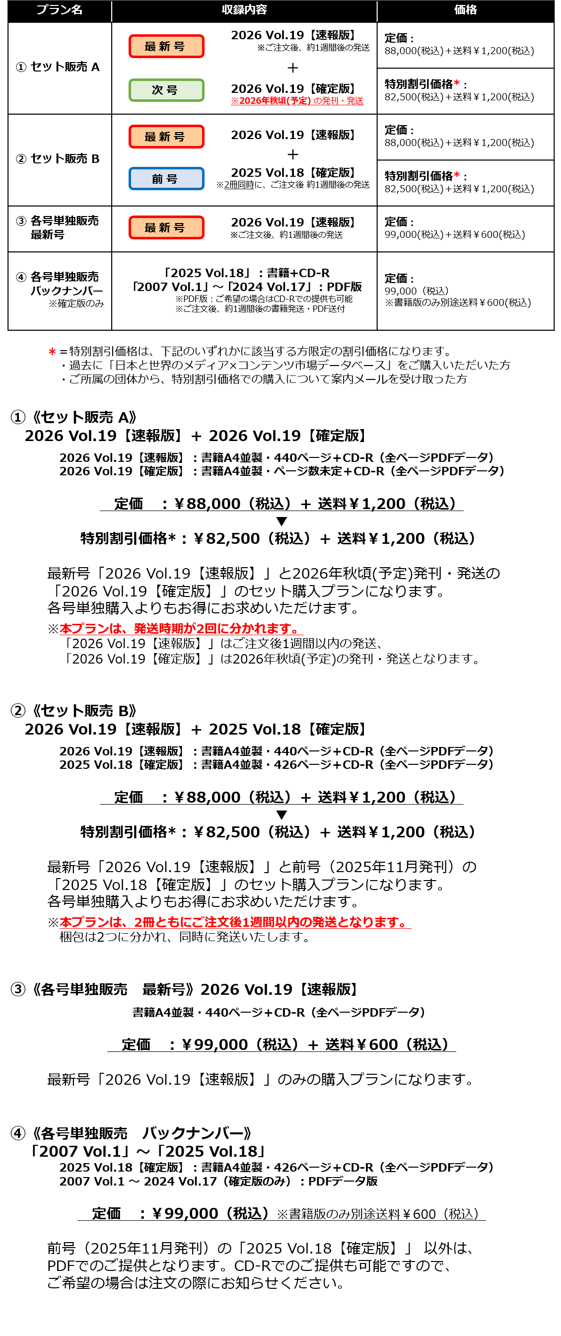 『日本と世界のメディア×コンテンツ市場データベース』を年2回発刊しています。